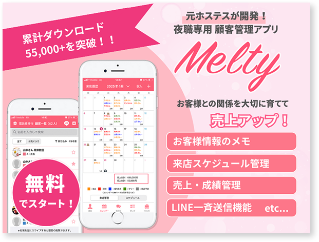 今回はキャバ嬢やホステスなどホステスのための顧客管理アプリ「Melty」を活用した、具体的な使い方アイデアをご紹介!今日から実践できる内容ばかりなので、ぜひ参考にしてみてくださいね。