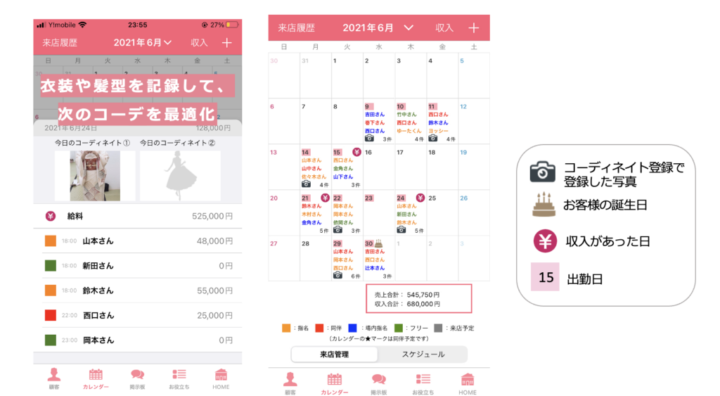 そして、コーディネートと一緒に指名数や売上、反応の良し悪しも一緒にメモします。