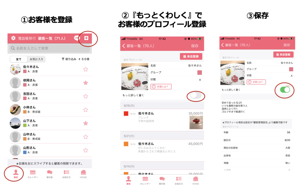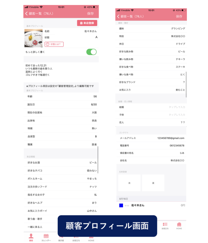 こういった情報を記録しておけば、「今月お誕生日ですよね?」「この前のゴルフどうでしたか?」など、次回来店時の会話につなげることができます。